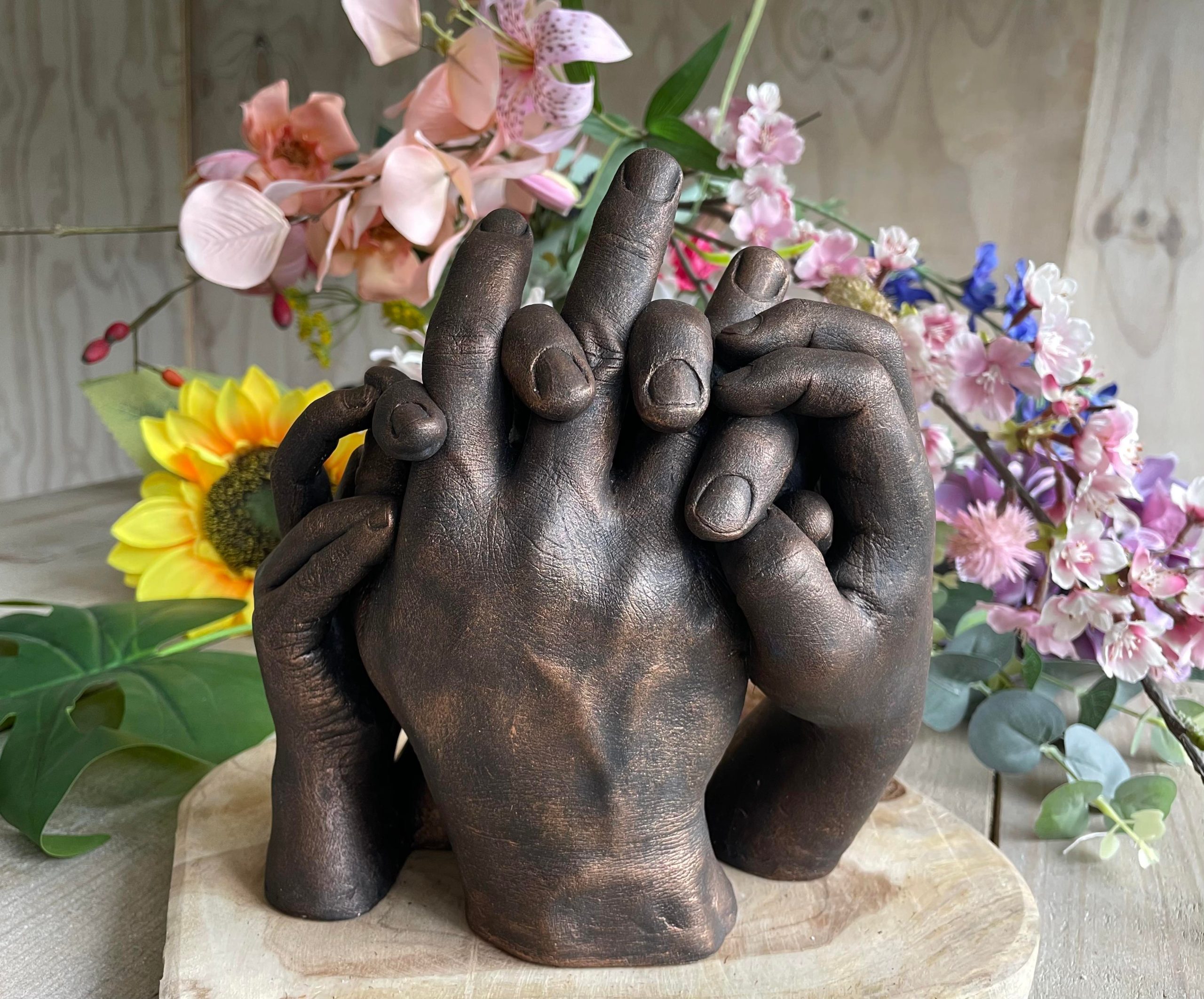 Tijdens deze castings staan wij heel dichtbij. Vaak is er veel verdriet, maar er komen ook mooie anekdotes naar boven. Met een lach en een traan voegen wij er nog een prachtige herinnering aan toe. Want deze unieke, gedetailleerde handen tekenen jullie geschiedenis. Ze zijn krachtig, hebben rimpels, dragen betekenisvolle ringen, hebben littekens of hebben een unieke vorm en kunnen enorm veel troost geven. Juist omdat jij deze handen zo goed kent.